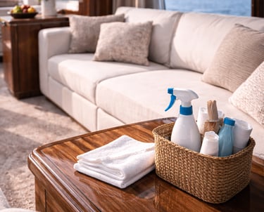 Limpieza de cojines, sofás y tapicerías a bordo, sin desmontajes innecesarios. También gestionamos lavandería de textiles del barco para dejarlo listo para navegar o para recibir invitados con máxima comodidad.