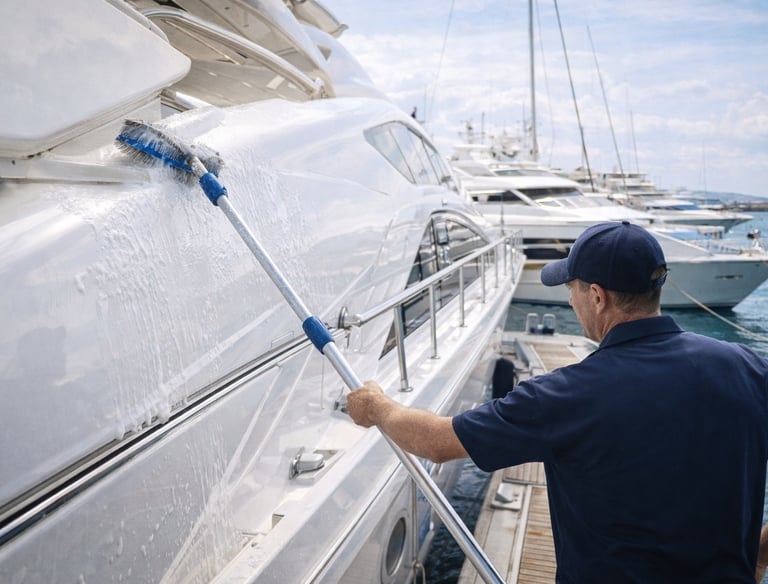 Ofrecemos limpieza náutica premium para yates, veleros y embarcaciones: limpieza exterior, limpieza interior, limpieza completa, y servicios de mantenimiento como teca, inox, tapicería, lavandería y control de humedad.